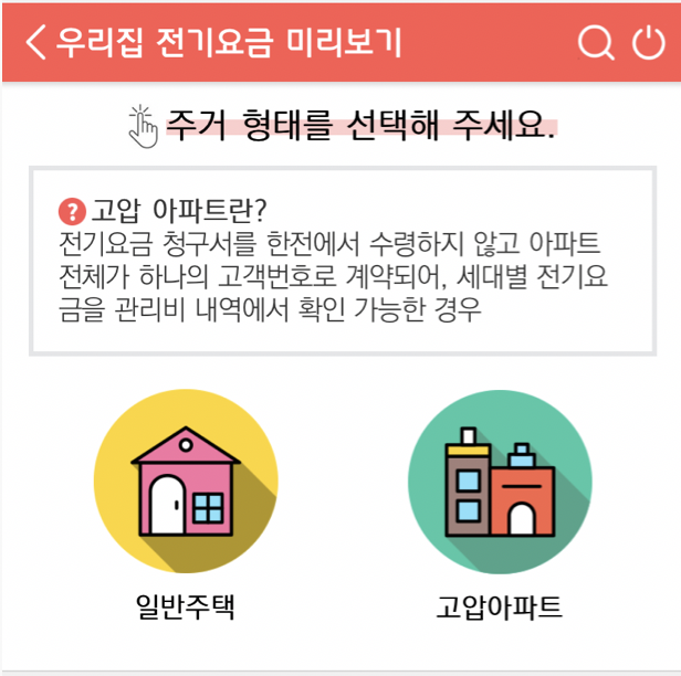 전기요금 계산기 앱으로 전기요금 확인하기 3. 주거 형태 선택하기