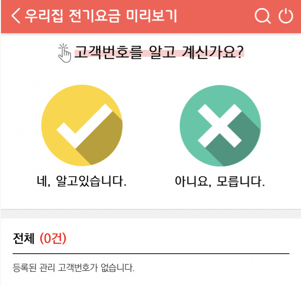 전기요금 계산기 앱으로 전기요금 확인하기 4. 고객번호 또는 정보 입력 후 전기요금 미리 보기